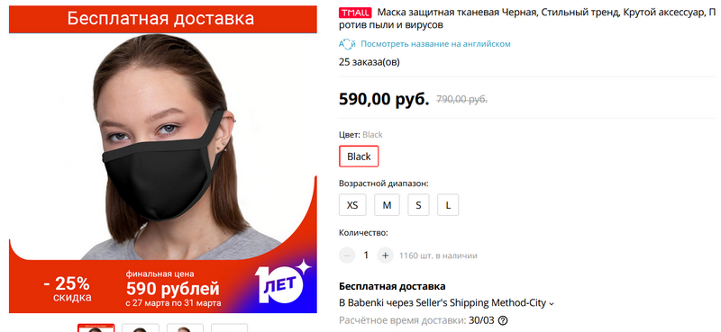А вот они на TMaill с быстрой доставкой с российского склада. Нормальненько так ребята цену подняли на одноразовые маски, не так ли?