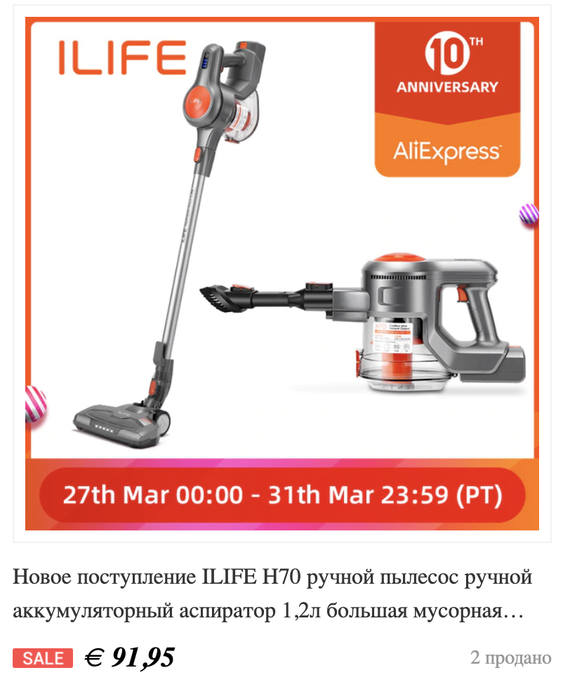 Со вчерашнего дня запущена распродажа в честь 10-летия Aliexpress (у меня есть смутное впечатление, что по этому поводу они какую-то распродажу уже делали), которая продлится до 01.04 09:59 мск.