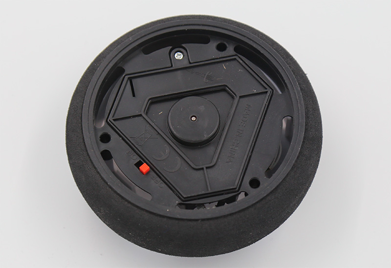 На пузе - откручивается штучка, нужно вставить три батарейки, которые в комплект, разумеется, не входят. Заклинаю - не потеряйте болтик. Он маленький и теряется. У нас потерялся. Это было трагедией, но случайно нашли, и это счастье: аэромяч с крышкой работает намного прикольнее, чем без крышки, потому что без нее вываливаются батарейки в самый ответственный момент.