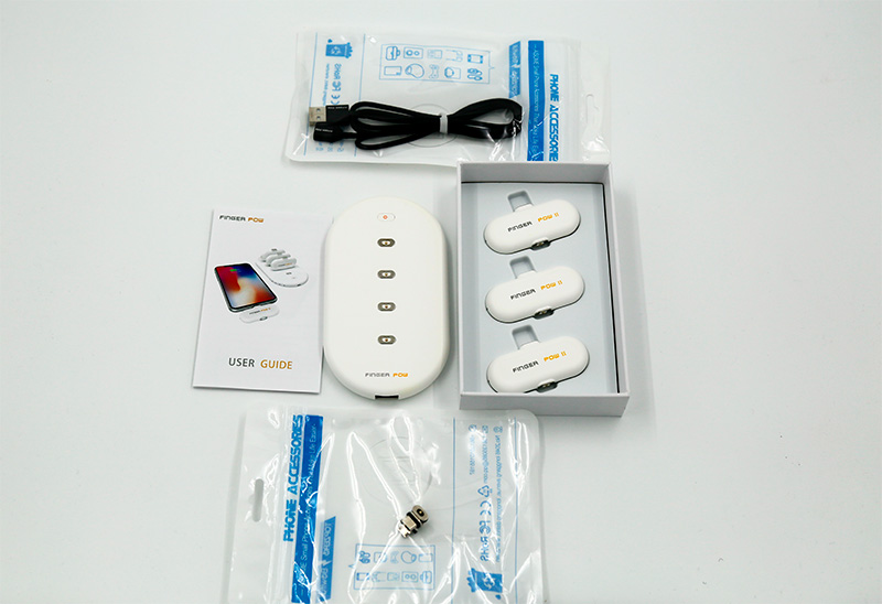 Очень прикольная и инновационная штука - люблю такое. Это беспроводной аккумулятор с сателлитами Finger Pow II - 2700 рублей (один вариант комплектации есть с поставкой из России). Основной аккумулятор на 5000 мАч, от него также запитываются три маленьких аккумулятора на 1100 мАч. Маленькие аккумуляторы имеют сменные магнитные головки под три вида портов: microUSB, USB-C и айфоновский/айпэдный Lightning.