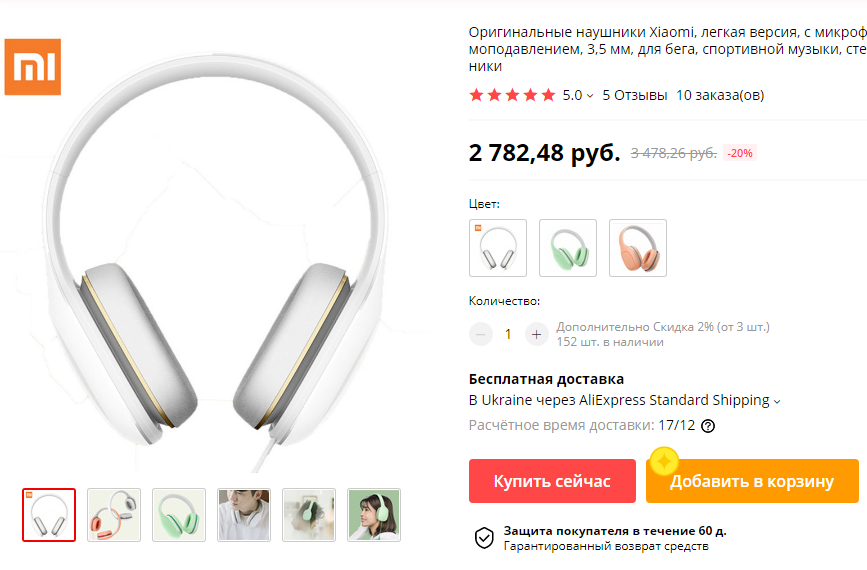 Xiaomi Headphones Easy - полноформатные проводные наушники. 3478 рублей. (Читатели обнаружили эти наушники заметно дешевле - за 2450.)