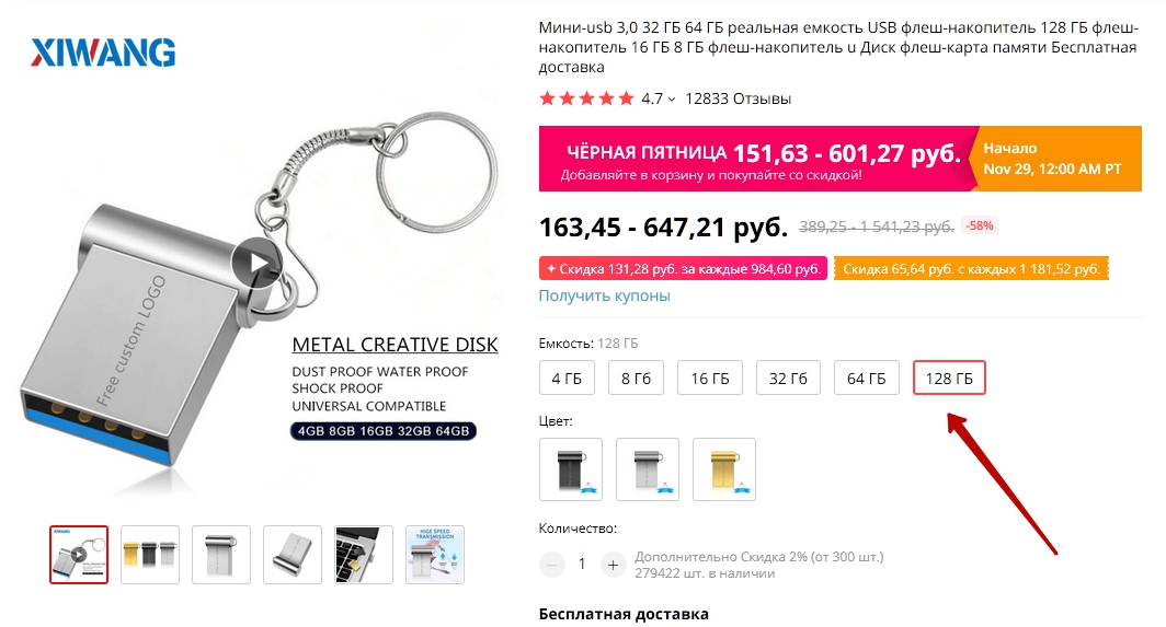 Флешка Xiaomi Mijia U-диск на 64 Гб - 891 рубль. Тут суть в том, что она оформлена как брелок, то есть ее можно прицепить на ключи, также она еще относительно быстрая.