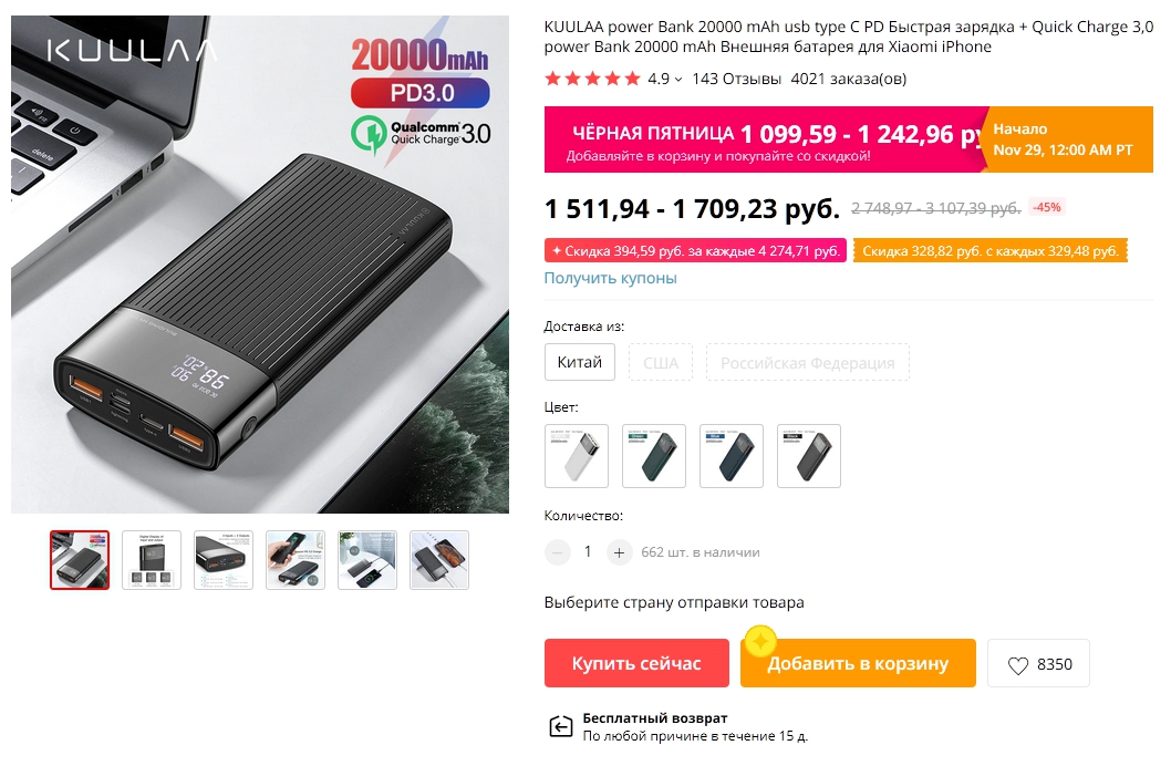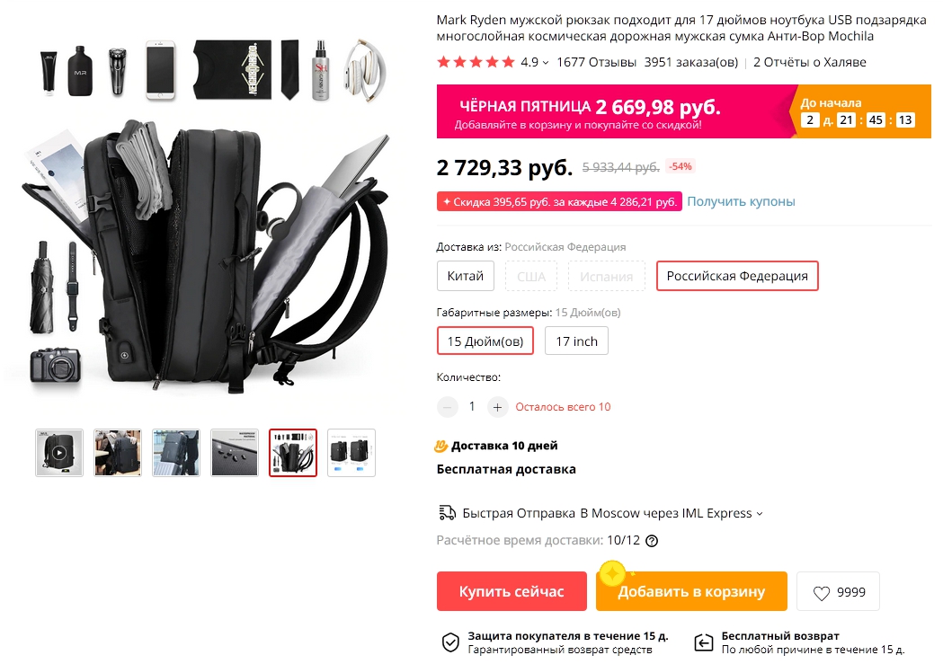 3. Купоны на $10 и $15 действительны только с 29 ноября 11:00 по 4 декабря 10:59 МСК)