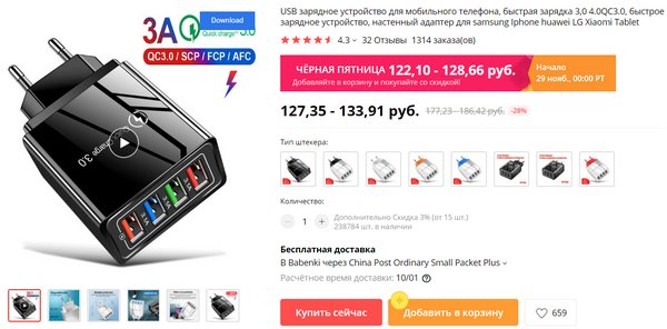 Наконец-то зарядный четырехпортовик, где все четыре порта - QC 3.0! Заказал. Причем отдает 45 Ватт и цена смешная (пока, судя по всему).