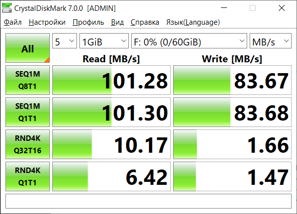 Замерил скорость по CrystalDiskMark. Действительно не тормозная.