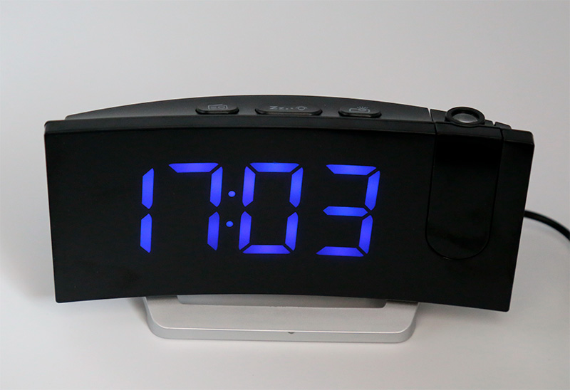 Проектор, разумеется, связан с часами и его отдельно настраивать не надо. Может проецировать вверх на потолок, вперед (поворачивается на 90 градусов), назад на стену (45 градусов). Изображение можно переворачивать на 180 градусов одной кнопкой.