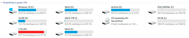 Подключил к сети и компьютеру, подключил кучу устройств: диск трехдюймовый, SSD двухдюймовый, флешка, внешний аккумулятор, внешний диск, microSD и SD.