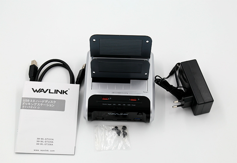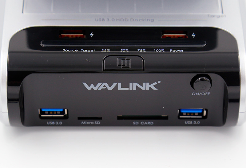 Вот это я сразу заказал, как увидел ссылку в комментах - Wavlink Communicator D3. Люблю такие штуки! Это докстанция на два диска 3 или 2 дюйма, хаб с двумя портами для зарядки (включая внешние аккумуляторы), хаб с двумя портами USB 3.0, слотом microSD и SD плюс с функцией копирования с диска на диск без подключения к компьютеру. Стоит 3300 рублей.