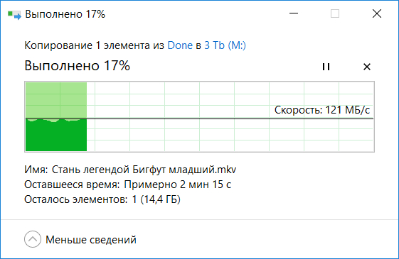 Скорость закачки с компа на диск в докстанции тоже сразу замерил - все круто, 120 мегабайт в секунду! USB 3.0 в полной красе!