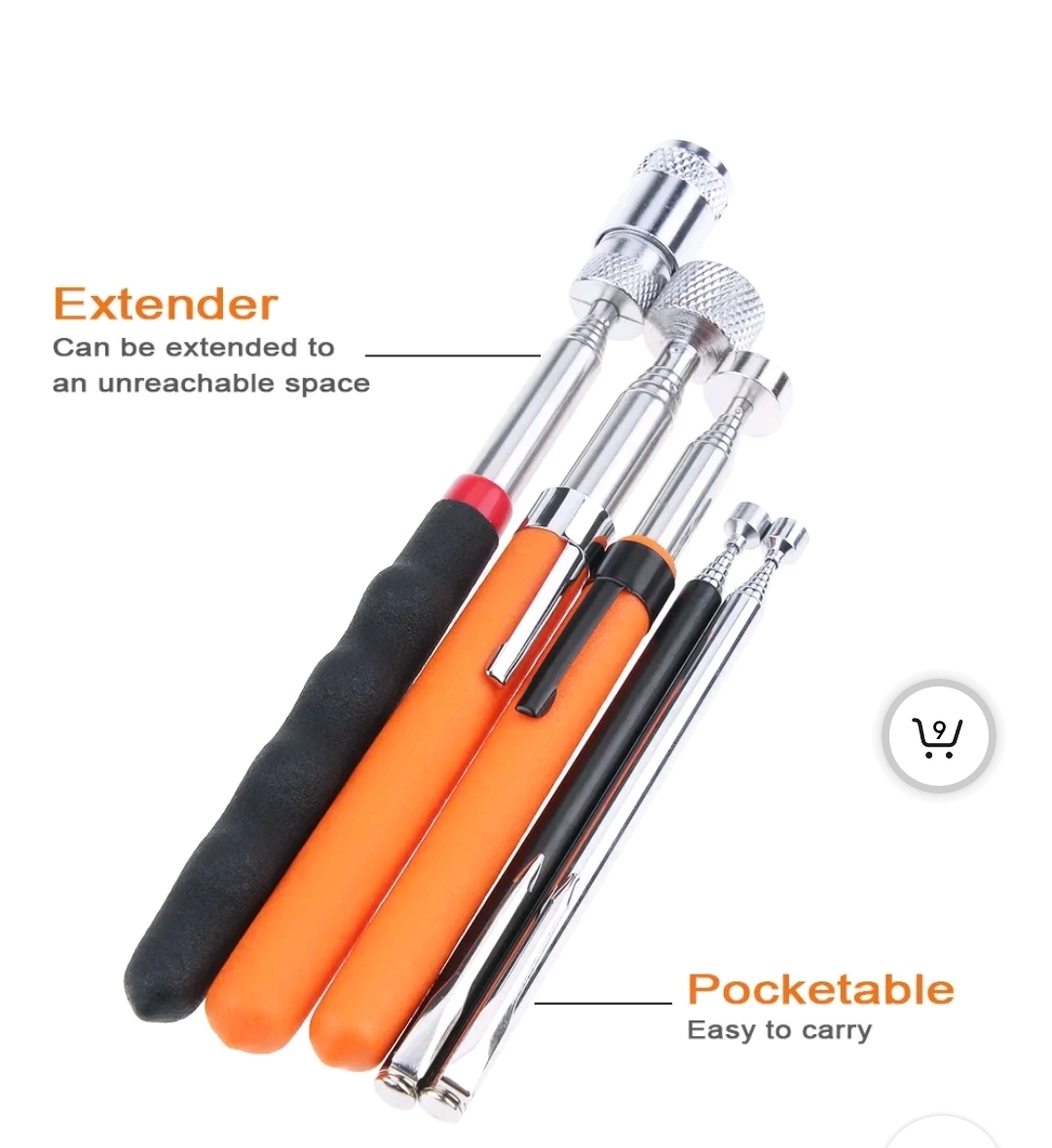 Делюсь проверенным, полезным в хозяйстве и не очевидным девайсиком - магнит на телескопической указке. У меня третий слева на картинке - который с черным держателем на оранжевой ручке. Вот такая малявочка легко достает маникюрные ножницы из-за стиралки. Проверено неоднократно. И если даже она нормально держит, то не знаю, что может поднять большой магнит - топор из колоды что-ли? А вообще брал ее муж, всякие болтики - гаечки свои подцеплять, а пользуюсь я с детьми - то вот ножнички из-за стиралки, то машинки из под дивана. Вещь рабочая, рекомендую.
