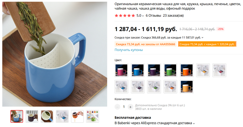 Давно пользуюсь вот такими чашками, правда, из оффлайна. Пока заваривается - крышкой накрыто, а потом сетчаты стакан вынул - и пей! (Наверняка есть варианты подешевле...)