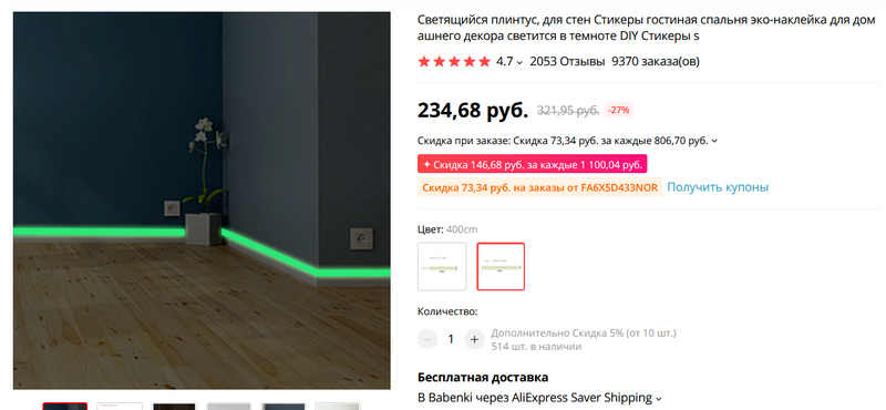 А это уже для взрослых - светящиеся наклейки для плинтусов. Я заказал себе - посмотрю, как работает.