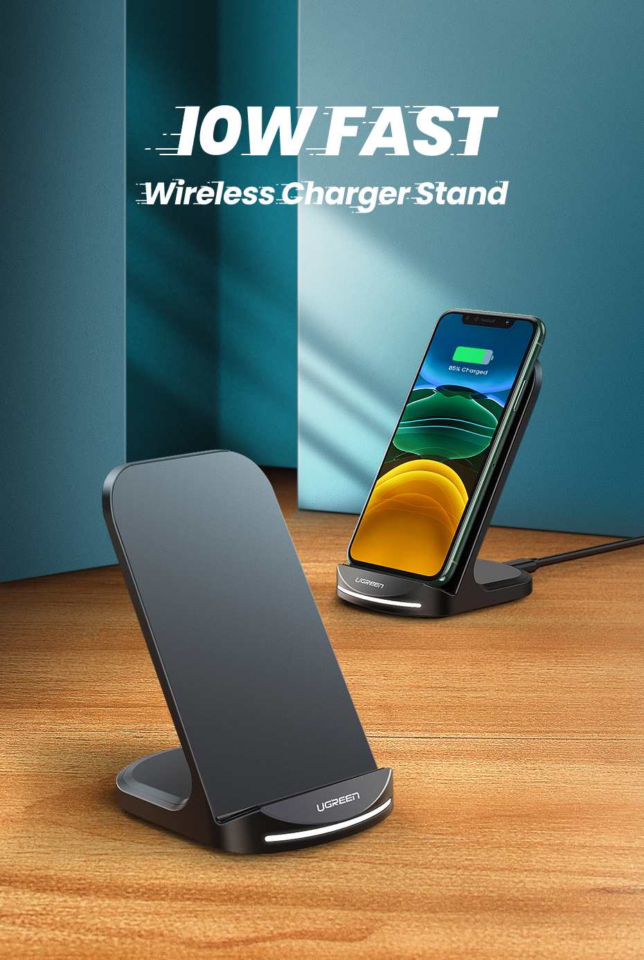 Рекомендуюбеспроводное зарядное устройство от Ugreen. Работает со всеми устройствами с поддержкой Qi. Заряжает и в горизонтальном и в вертикальном положении. Есть подсветка и она довольно яркая, но черный маркер помогает. Удобно использовать как подставку для телефона во время зарядки. Приходит в хорошей упаковке с ТуреС кабелем от Ugreen.