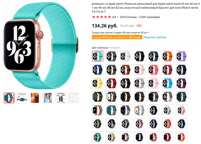 Большой выбор эластичных ремешков для часов Apple двух размеров самых разнообразных расцветок.
