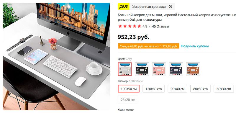 Чисто формально это называется большой коврик "для мыши", однако это коврик и для мыши, и для клавиатуры, и для всяких других аксессуаров. Водонепроницаемый, легко чистится или моется, имеет противоскользящую основу. Идеален для геймеров, также отлично подходит и для офисной работы. Несколько цветов, несколько размеров.