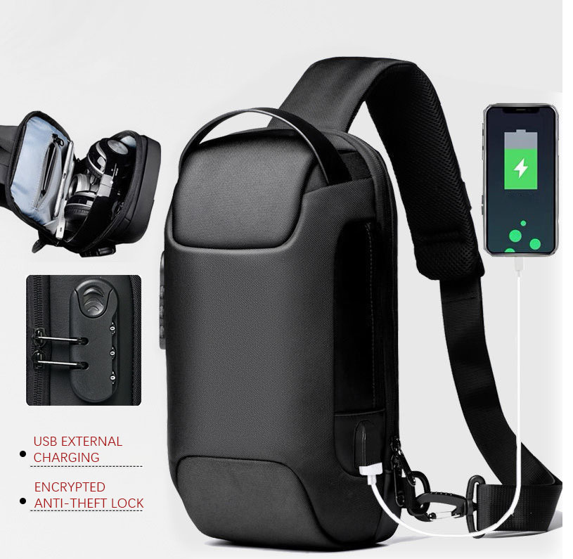 Мужская водонепроницаемая, многофункциональная сумочка-слинг через плечо с USB-разъемом и защитой от кражи, дорожный мессенджер. Цена 970 руб. Доставка 06 окт-11 окт.
