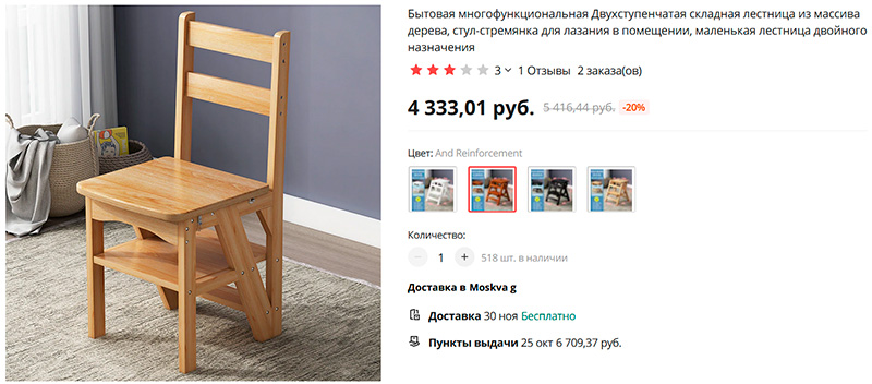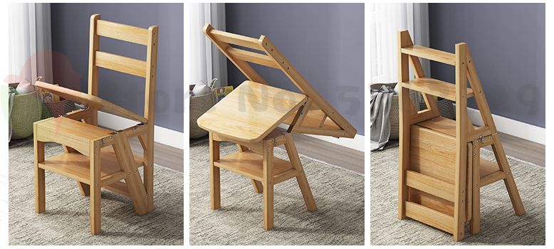 Забавная штука, прям как в том старом анекдоте о сумочке из кожи члена слона, которая при легком поглаживании превращалась в чемодан. Здесь - почти то же самое: обычный деревянный стул, который при легком поглаживании превращается в небольшую стремянку. Я себе заказал, мне и стул такой был нужен (под массажер) и стремянка бывает актуальна, чтобы в кладовку за ней не бегать.