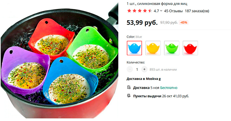 Силиконовые формы для простого и быстрого приготовления яиц-пашот. Заказал себе парочку: люблю это дело, а готовить без приспособления не умею.