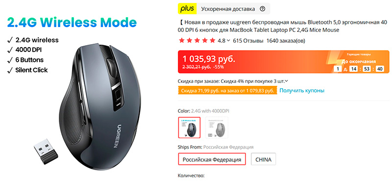 Искал себе недорогую эргономичную Bluetooth-мышку хорошего производителя - для ноутбуков нужна, чтобы порт адаптером не занимать. Нашел вот такую новую модель от Ugreen. Вроде со всех сторон все хорошо: эргономичная, тихие клавиши, 6 настраиваемых кнопок, 4000 DPI, также поддерживает и подключение через свой беспроводной адаптер (то есть ее можно одновременно подключить к двум компьютерам и переключаться при необходимости). Есть автоматический режим сна, продлевающий работу от одной батарейки до 18 месяцев. Есть доставка с российского склада.