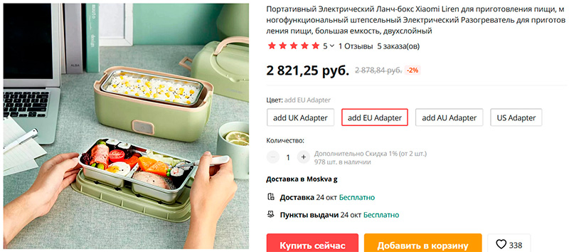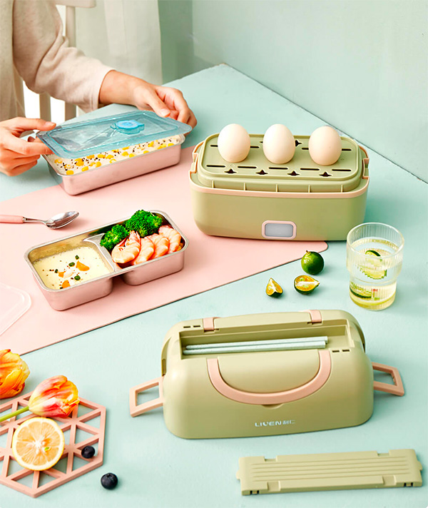 Интересная какая штука - ланч-бокс Xiaomi Liren с возможностью разогрева пищи. Два металлических отсека (гарнир, горячее блюдо и салат) с силиконовыми крышками. При подключении к розетке может все разогреть.