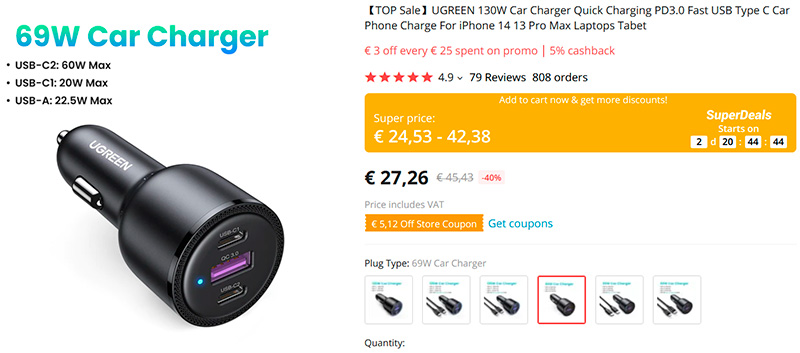 И у этого же производителя, оказывается, теперь есть трехпортовые автомобильные адаптеры на 69 или 130 ватт с поддержкой PD, от которых в том числе можно заряжать ноутбуки.