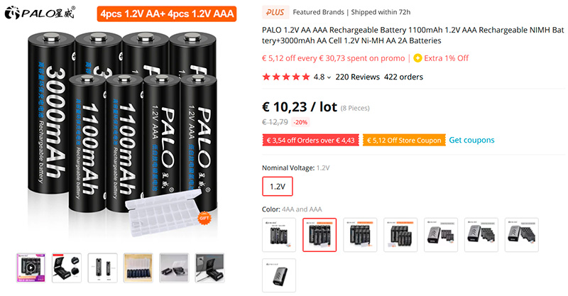 Разные варианты комплектов никель-металогидридных перезаряжаемых аккумуляторов размеров AA и AAA на 3000 и 1100 мАч, соответственно, известного производителя. Можно заказать с зарядным устройством.
