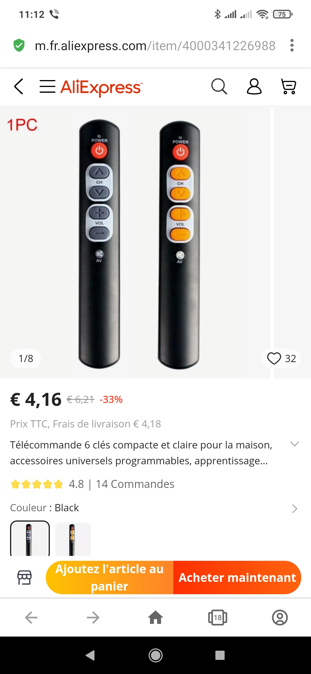 Простейший универсальный пульт управления с 6 кнопками. Включение-выключение телевизора, смена каналов, регулировка громкости, выключение звука. Настраивается от обычного пульта для любого телевизора. Удобная штука для родственников в возрасте, которым трудно управлять телевизором пультом с кучей кнопок.