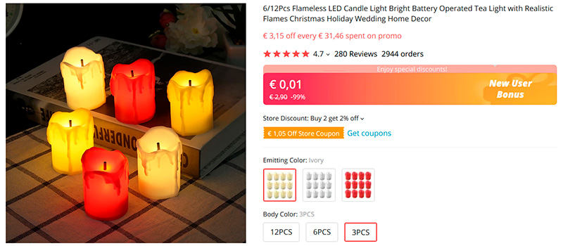 Как раз к зиме и приближающимся новогодним праздникам - полипропиленовые электронные свечки трех цветов со светодиодными лампами с имитацией пламени. Наборы по 3, 6 и 12 штук.
