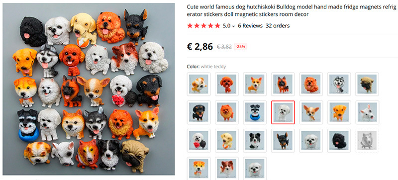 Как старый фанат магнитиков на холодильник (у меня один большой холодильник от них даже развалился, что не притупило мою страсть к этим штукам), обнаружил тут магнитики с прикольными собачьими мордочками, ну и не мог пройти мимо. Шесть штук заказал. Зато самых прикольных.