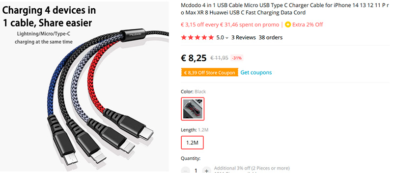 Также у них есть очень удобный зарядный кабель "4 в 1" с головками microUSB, USB-C и двумя эпловскими Lightning (например, для одновременной зарядки айфона и айпэда). Там еще и кабели разных цветов для каждой головки, это очень удобно.