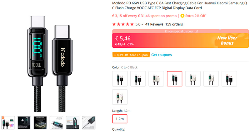У них есть несколько отличных кабелей с дисплеем, показывающим мощность зарядки. Я себе взял топовый, поддерживающий мощность PD 100 ватт. (У меня пока смартфон поддерживает 67 ватт, но скоро приедет поддерживающий 120 ватт - вот и проверим.).