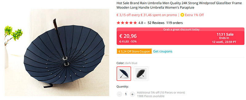 В этом году Aliexpress изменили правила проведения главной распродажи года. Если в прошлые годы сама распродажа шла два дня с 11 по 13 ноября, а до этого какое-то время шел так называемый разогрев, то в этом году распродажа уже стартовала с 1 ноября и закончится она 13 ноября в 11 часов утра по Москве.