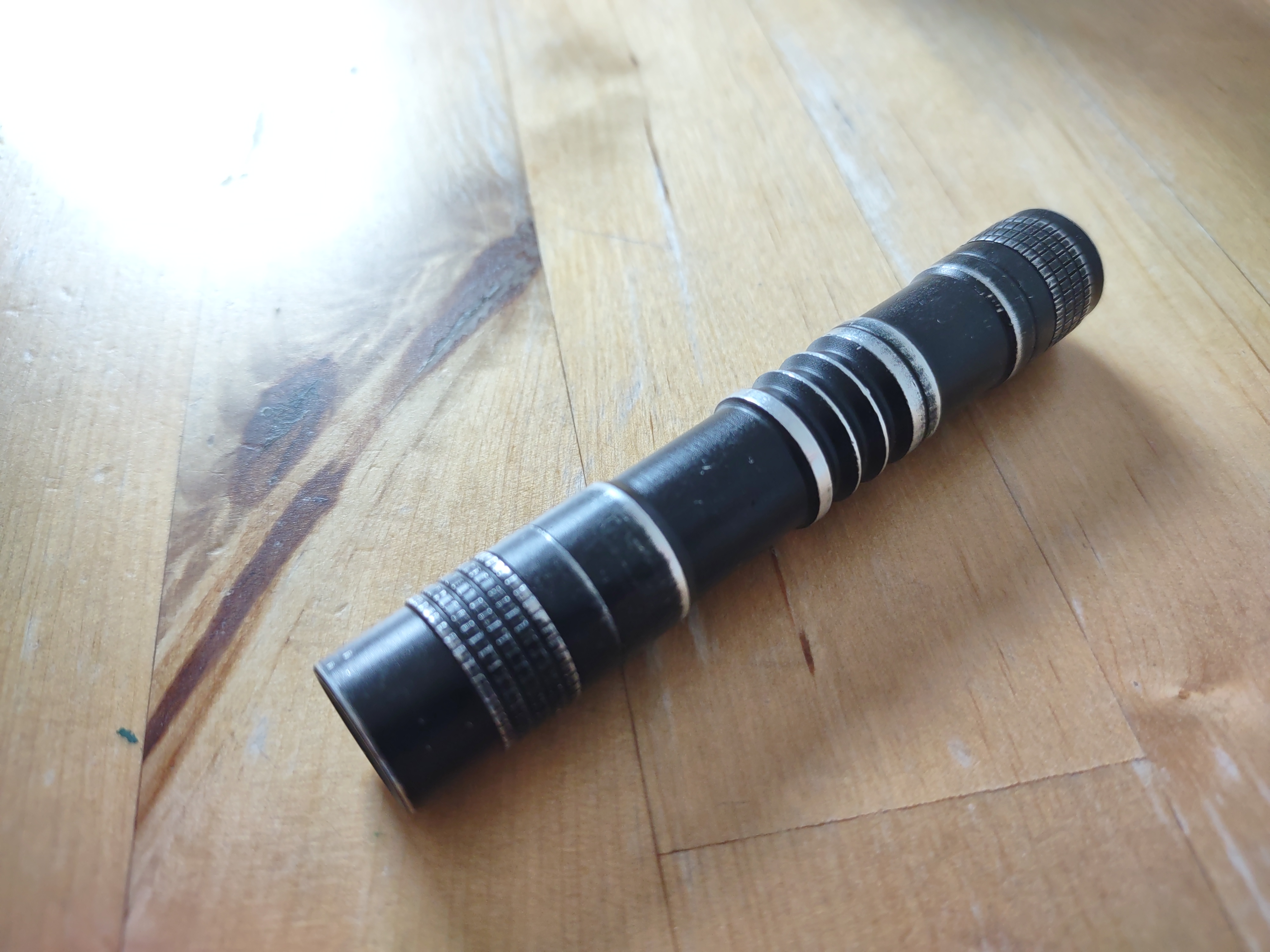 Маленький, но мощный. С двумя лампами на 5000К. Имеет 7 режимов свечения: 3 по яркости + турбо + 3 режима мигания + возможность использования одной из/двух ламп одновременно. Водонепроницаемый, металлический, корпус противоударный, износостойкий, имеет магнит на ручке, так же в комплекте удобный обруч для использования фонарика в качестве налобного. Имеет систему предохранения от перегрева. Заряжается от usb ТуреС, может быть использован в качестве пауербанка.