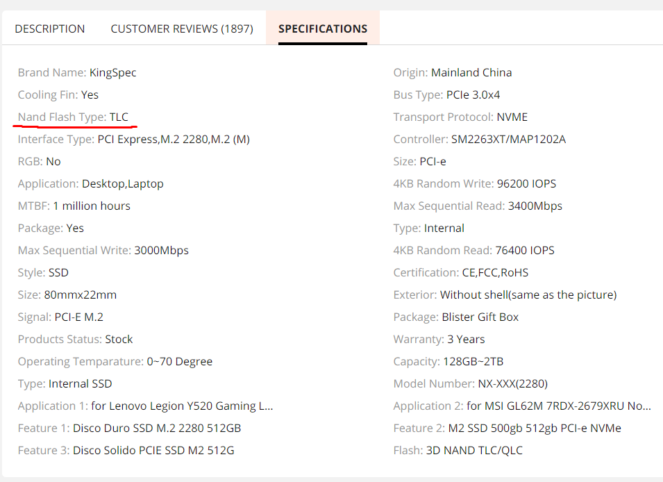 на фото памяти на алиэкспрессе написано про gen3x4 и ни слова ни про QLC ни про TLC.