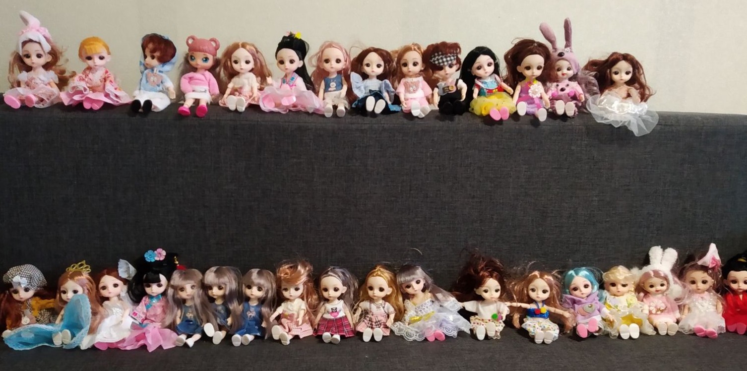 У Оли трое детей и куклами играет ее младшая четырехлетняя дочь. Она уже/ещё в рот ничего лишнего не сует, но вполне устраивает чаепития и прочие вечеринки.