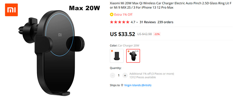 Посоветовали мне в комментариях вот такой фирменный держатель с беспроводной зарядкой для машины - Xiaomi Mi Car Charger. Я сначала не хотел его брать, потому что привык к магнитным держателям, где не нужно разводить руками лапки держателя. Однако оказалось, что здесь тоже ничего руками разводить не надо - оно само: лапки раздвигаются сами, когда подносишь к держателю смартфон, а потом его зажимают очень крепко и надежно. Чтобы раскрыть их, нужно нажать на кнопку слева. Мощность беспроводной зарядки - реально 20 ватт, я проверил (под 3000 мАч на контроллере смартфона). Крепится на решетку воздуходува, однако можно крепить к торпедо - есть специальный держатель. В общем, я очень доволен, спасибо за рекомендацию.