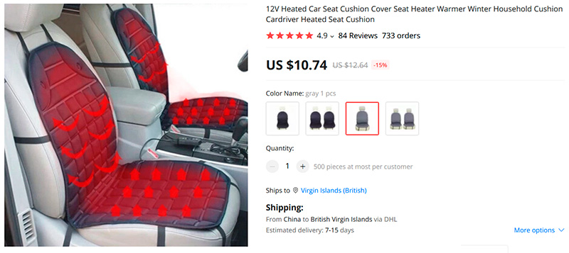 Как раз в преддверии зимы - накладки на сиденья автомобилей с подогревом. Черные и серые, есть вариант заказать две накладки в комплекте со скидкой.