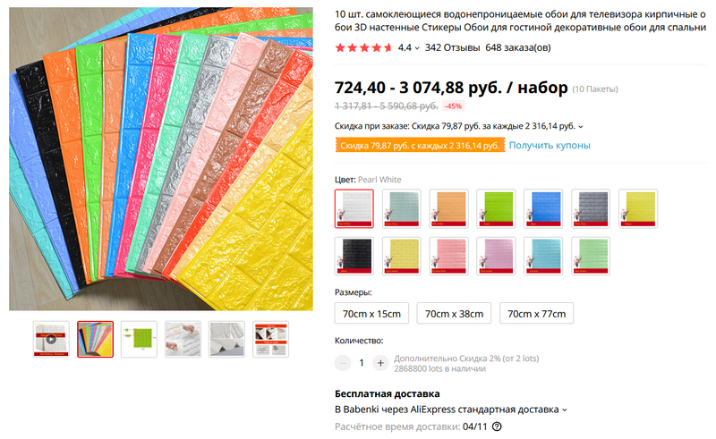 На эту штуку мне ссылку знакомый кинул - он купил эти самоклеящиеся декоративные моющиеся панели, чтобы привести в божеский вид квартиру, которую он сдает на съем. Панели разных цветов и разных размеров.