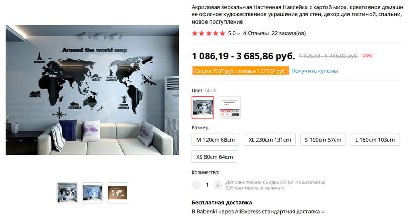 Вот еще один вариант - совершенно другой. В советские времена, насколько я помню, было модно у детей в комнате вешать политическую карту мира. У меня тоже висела, только я ее сам покупал и сам вешал. Вот намного более красивый и эффектный вариант - акриловая зеркальная карта мира на стену разных размеров.