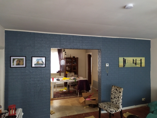 Сказал, что очень понравились простота и скорость наклейки, а также был очень доволен результатом. Из той самое серии, что реально быстро и дешево. А смотрится пристойно. Понятно, что в свою гостиную такое вряд ли будешь клеить, ну так оно и не для того.