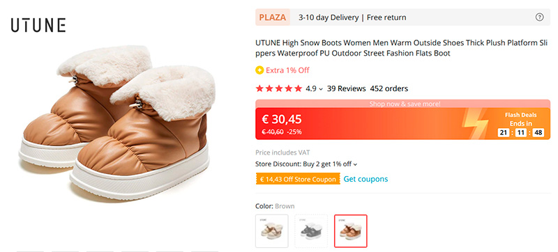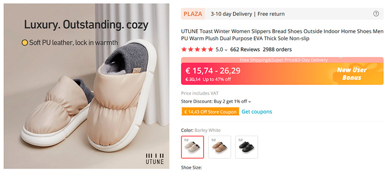 Бренд Utune производит удобную и уютную зимнюю обувь. Вот, например, их теплые зимние тапки. Три цвета, разные размеры. Кстати, давненько я обзоров тапок не делал, надо будет заказать потестировать.