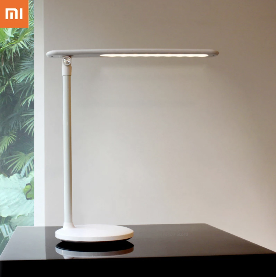 Настольная лампа Xiaomi. Регулировка яркости, 3 варианта цветовой температуры (тёплый, нейтральный, холодный). Аккумуляторная, т.е. можно использовать и без шнура.