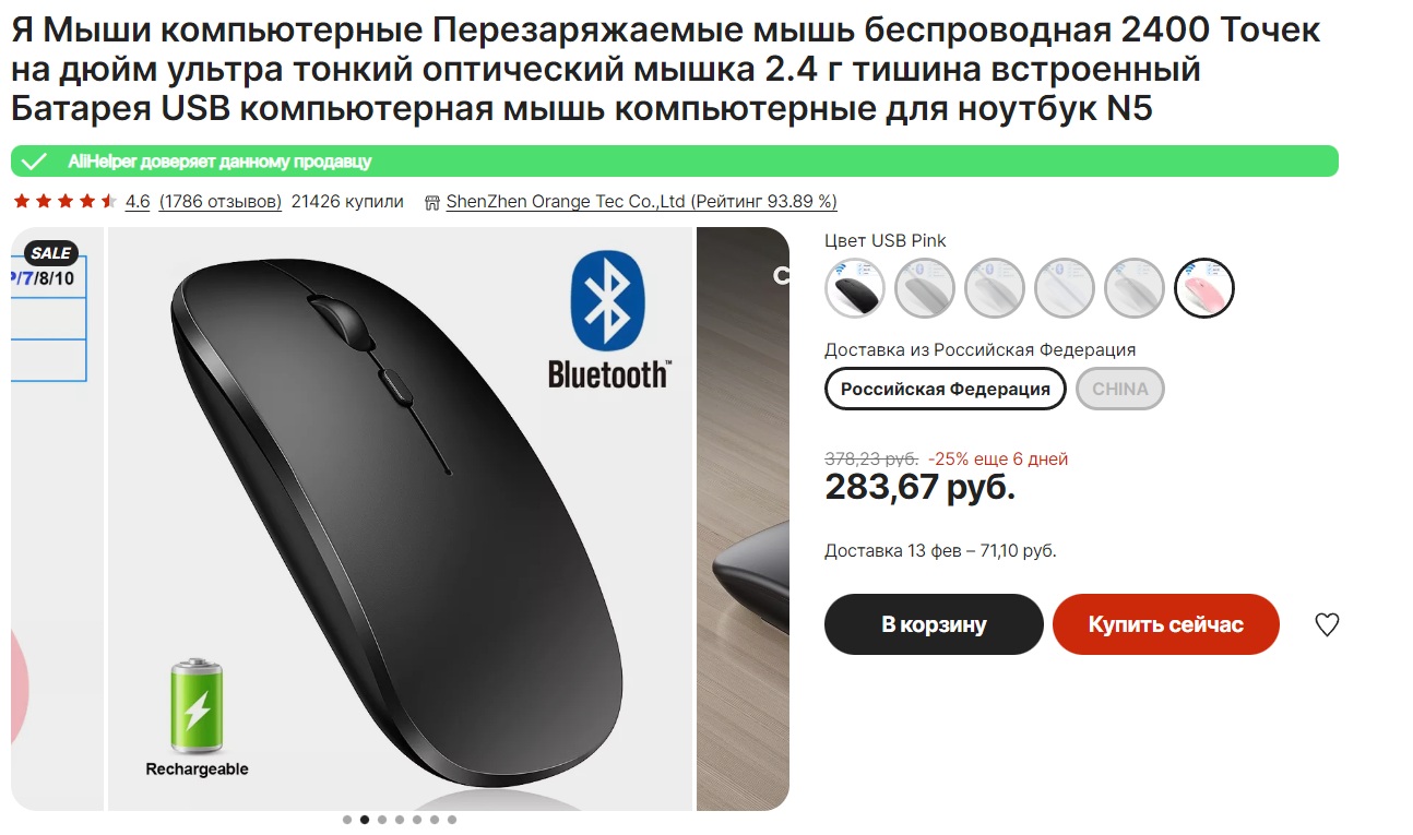 Есть два цвета: розовый (дешевле) и чёрный. Цена ~ 350 руб. Доставка из России, поэтому китайская новогодняя маньяна не должна коснуться.