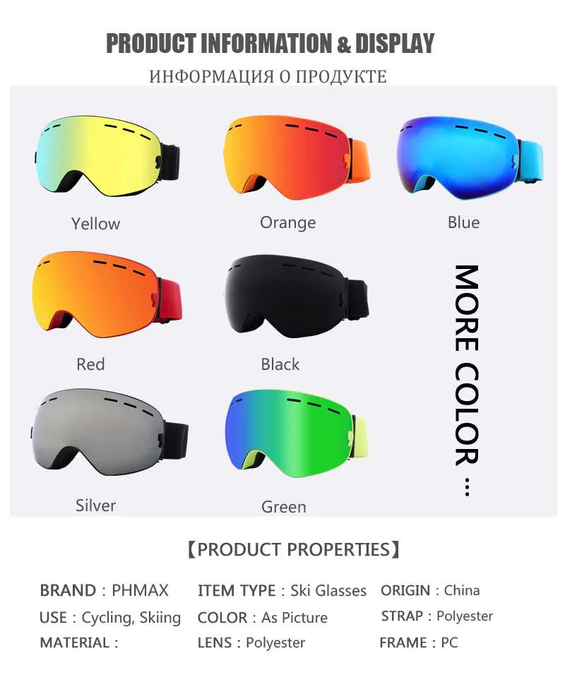 Действительно хорошие очки с надежным антизапотевающим покрытием, которое работает даже после намокания и по вменяемой цене. В остальном стандартно для алишных лыжных очков - удобная мягкая маска, двойное "итальянское стекло", большой обзор и возможность носить очки для зрения под лыжными, ветрозащита, солнцезащита, защита от запотевания, регулирующийся ремень.
