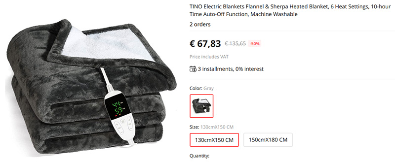 Как раз для зимы (и для замерзающей Европы, добавил кот Бублик) - фланелевое одеяло с подогревом. Есть два размера. Температура регулируется по шести уровням: 38, 42, 45, 48, 52 и 55 °C, также есть таймер отключения через 2, 4, 6 или 10 часов.