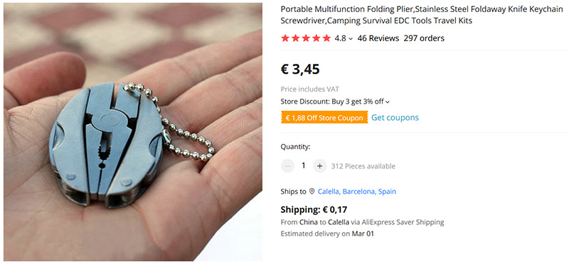 В копилку функциональных брелоков - аж целый мультитул с плоскогубцами, ножом, двумя отвертками (плоской и крестовой) и пилкой.
