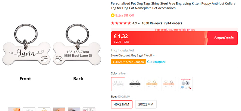 Подвеска на ошейник для собак и кошек, на которой продавец выгравирует имя животного, ваш телефон и, по желанию, адрес - на случай, если ваши питомец, не дай бог, потеряется.