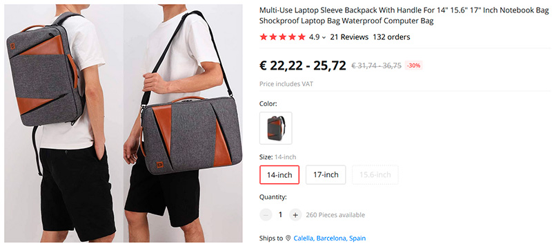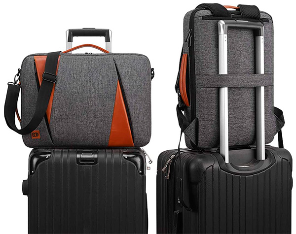 Смотрите какая интересная сумка для ноутбука. Двух размеров - 14 и 17 дюймов. Носится как рюкзак и на плече. Подходит для ноутбуков от 13" до 17,3". Защита от брызг, есть специальный ремень для крепления на ручке чемодана.