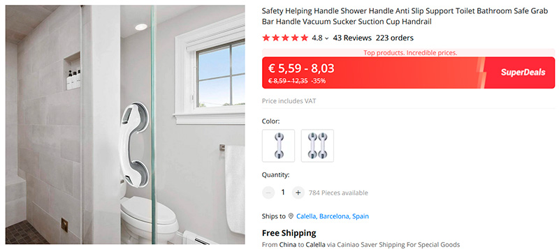 Реально полезная штука - дополнительная ручка на присосках для ванной. Крепится к чему угодно: к плитке стены, к стеклянной дверце и так далее. Стоит копейки, а безопасность значительно увеличивает. Для вас, для пожилых родственников. Я такую и в поездки буду возить: сколько раз сталкивался с тем, что идиоты-дизайнеры в отелях о таких простых, но очень важных вещах просто не думают. Прям реально хочется с собой такую штуку возить.