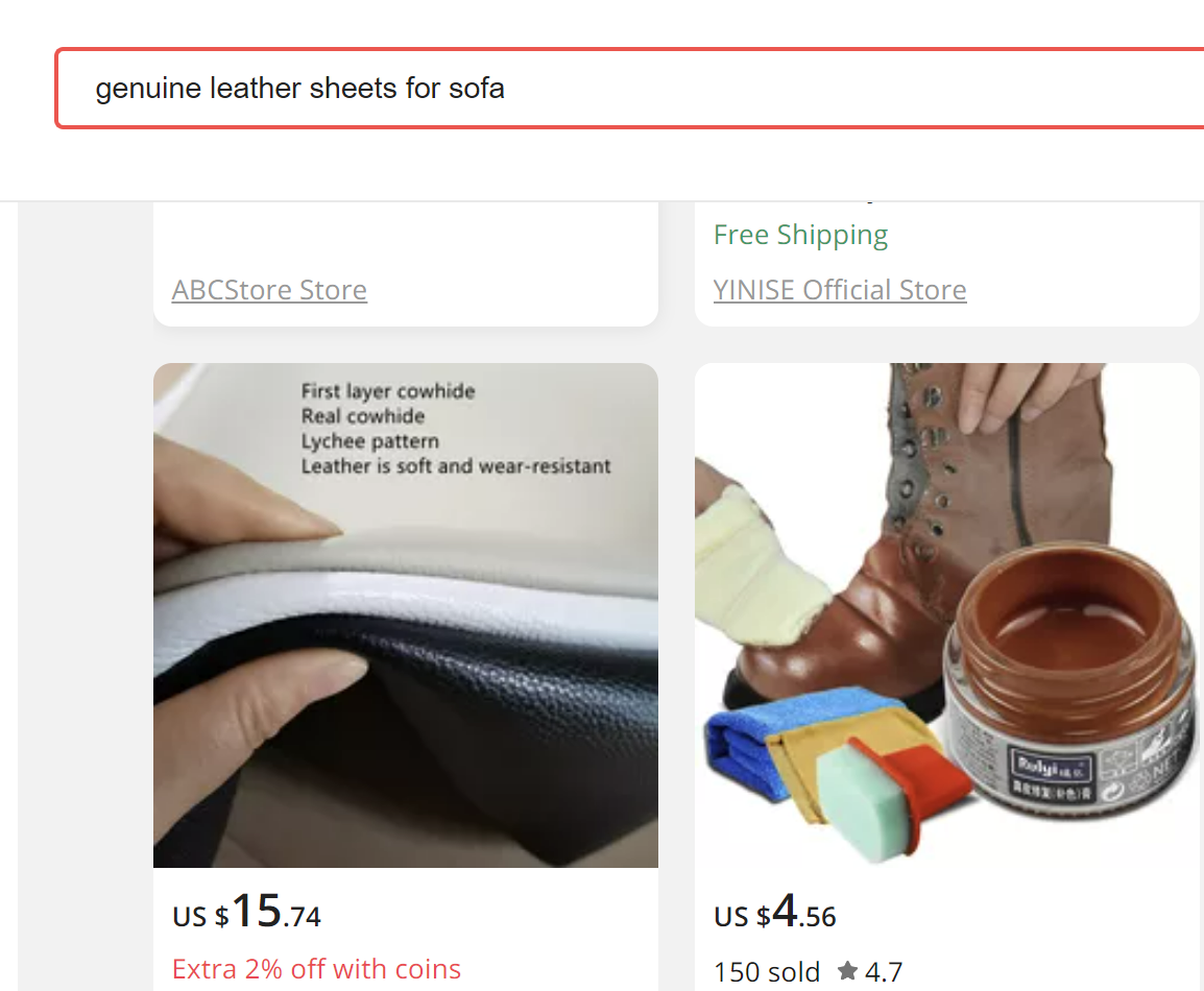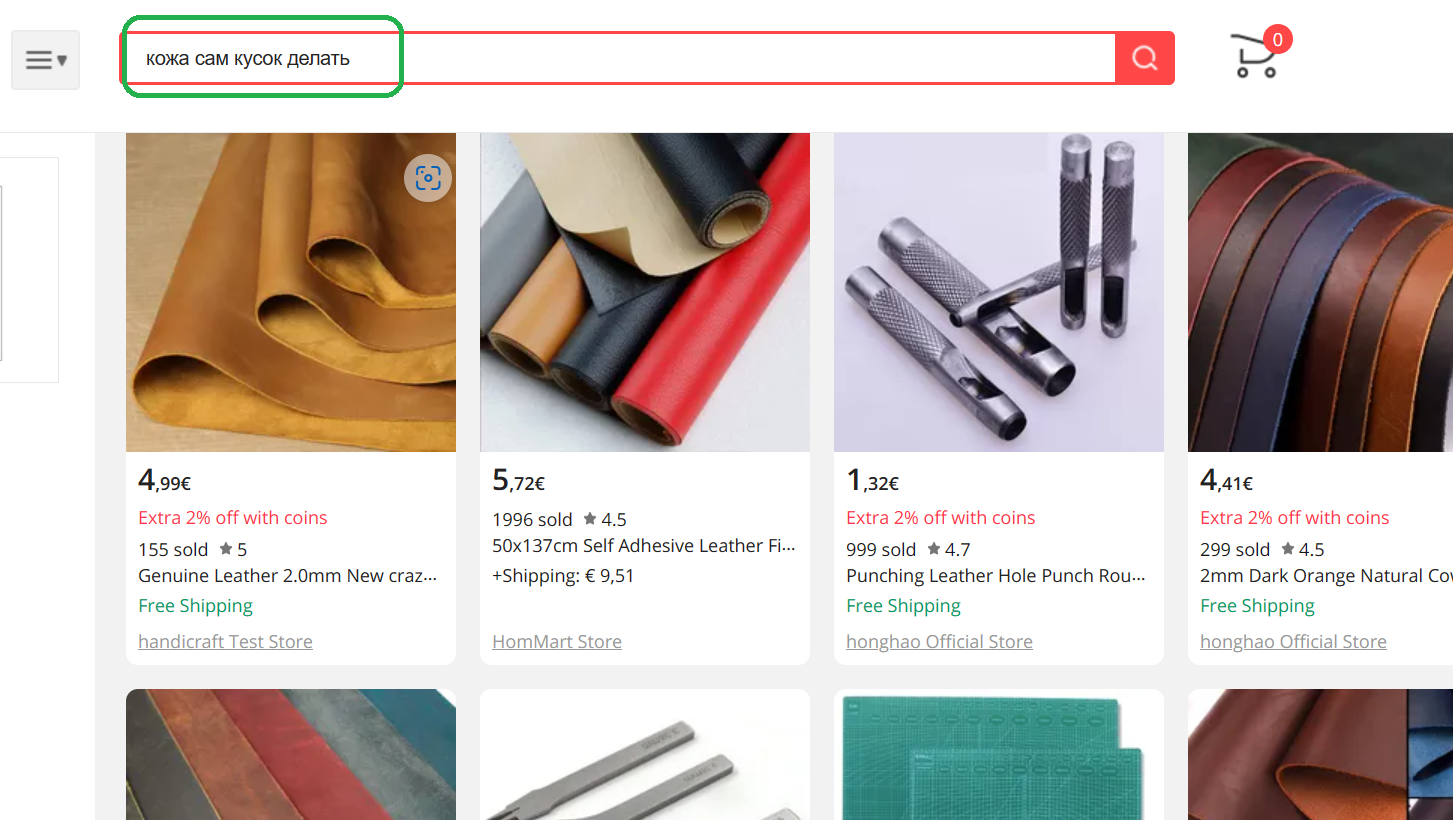 Ну ваш результат скорее подтвеждает наше с minibaw утверждение, что найти там что-либо конкретное совершенно невозможно. У вас поиск выдал и ремни, и лекала, и пробойники, и искусственную кожу. И отфильтровать весь этот мусор совершенно нереально.